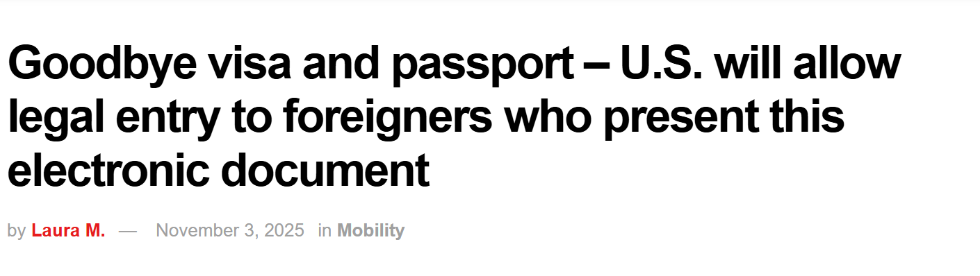 美国政府近日确认,未来部分国家的旅客无需出示签证或纸质护照,即可合法入境。