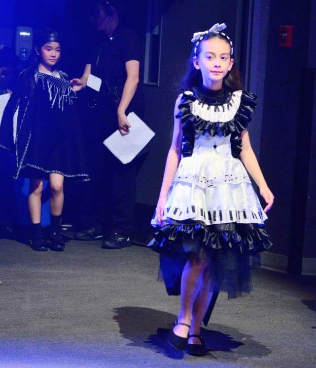 其中,最年轻的服装设计师要属Emabelle Fashion,现年11岁的唐琬雯(Tang Yuen Man Emabelle),她今年展出的童装作品以“音乐乐器”为主题,当小小模特儿穿着她的作品出现时,彷彿一颗颗音符,在剧场的天空跳动。