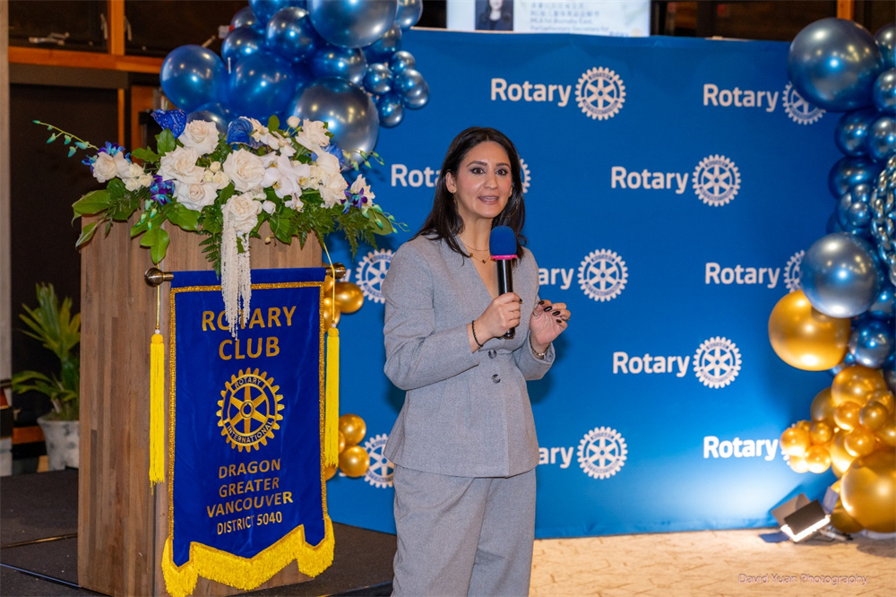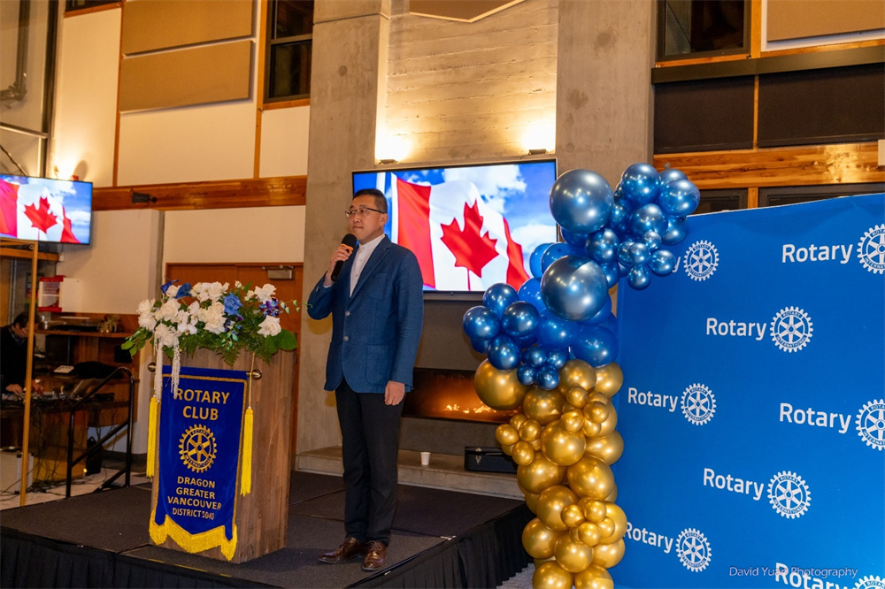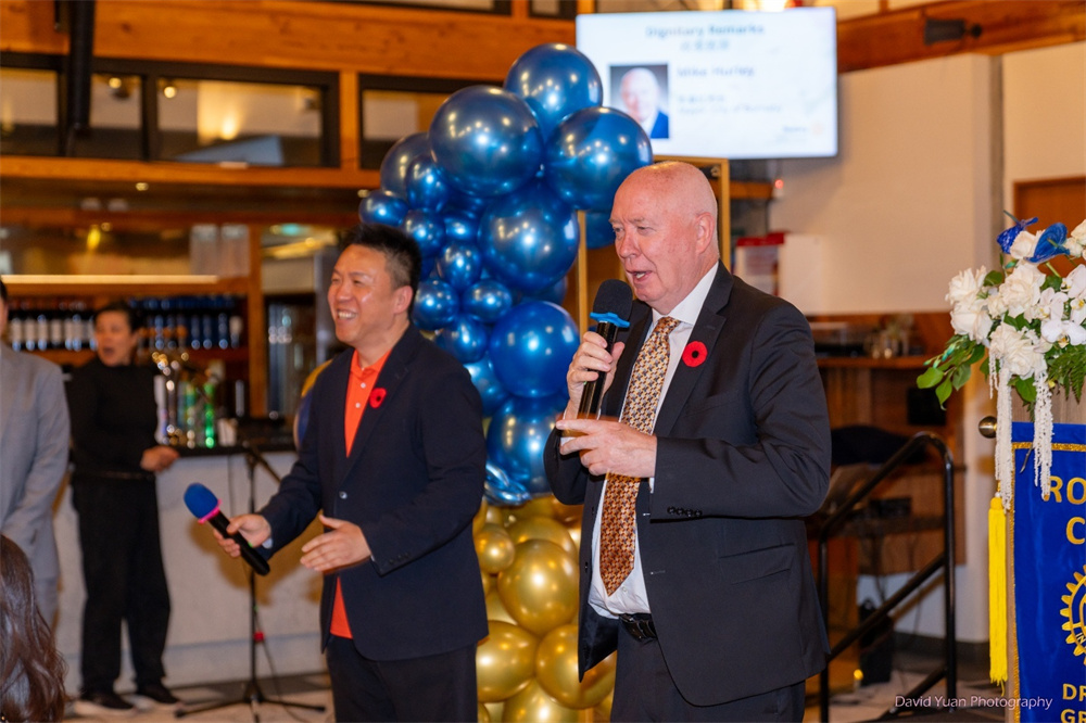 本拿比市市长Mike Hurley致辞认为扶轮社的精神与政府的责任相契合,即关心和帮助他人,提升社区的整体福祉。他称赞了大温华人扶轮社龙社在社区中所做的努力,认为这正是领导者应有的责任和担当。Mike Hurley还特别提到大温华人扶轮社龙社在过去七年的成就,高度赞赏现任会长Alice的活力和奉献精神,也对新一任会长Tina寄予厚望,相信新一届龙社将会继续一起努力,共同服务本拿比社区。