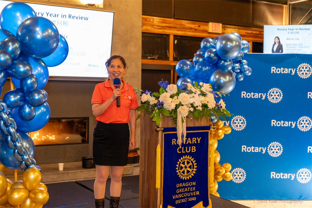 最后,Alice提到了大温华人扶轮社龙社在她任期内获得的多个荣誉奖项,她认为这些奖项不仅是对他们努力的认可,更是对未来的激励,鼓舞他们继续为社区服务,推动更多积极的变化。