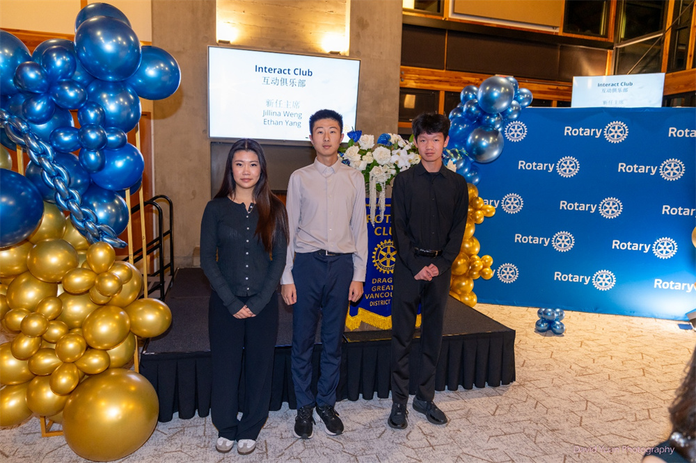 新任主席Tina Guo宣布interact Club青少年互助俱乐部.新一任主席Jillina Weng ,Ethan Yang, Leo Li