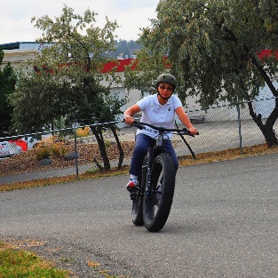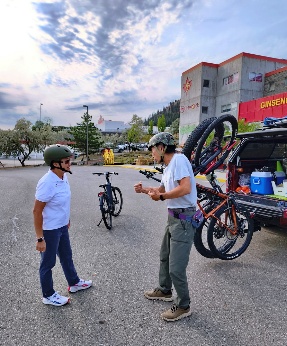 这次前往Wells Grey省立公园路途,约好了周末一早就e-Bikes论春秋。先前,很多自以为是的车友,在试骑时、都忽略安全帽的佩戴,Emma竟然车上有自备一顶,拿来一看、竟然跟我的有异曲同工般神似,乐的我俩开心不已。