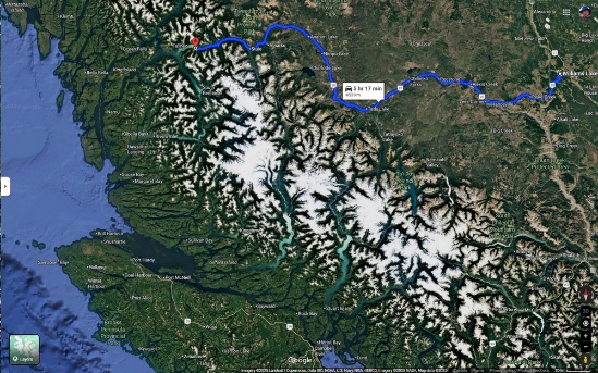 * Bella Coola,峡湾深处的小山村,四周大山盘据。*