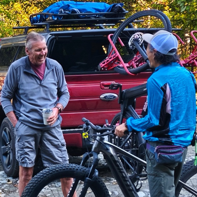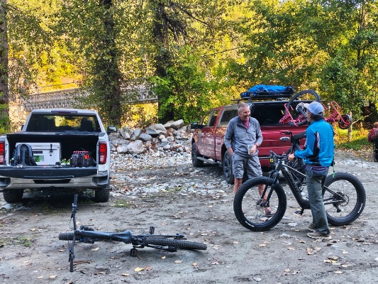 看见我皮卡后面架着三种风格迥异的e-Bikes,他先选了胖胖轮胎Yukon E+,仔细端详了整体结构、聊了先前看到胖轮胎的感觉:够粗壮,但肯定重量不斐、摩擦力也夸张。等到试骑两圈后,发觉智能助力的效益,已经将所有负面顾虑一扫而空。