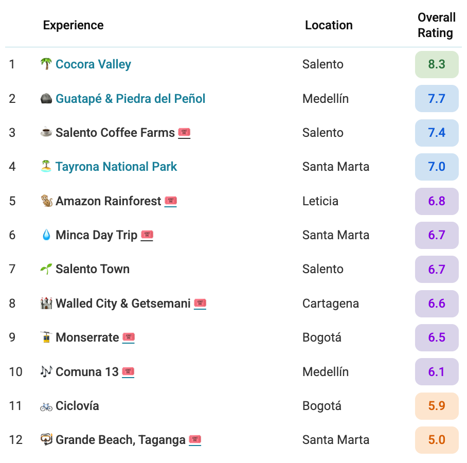 💸 额外费用:中段某段路段会收取额外 COP$8000
