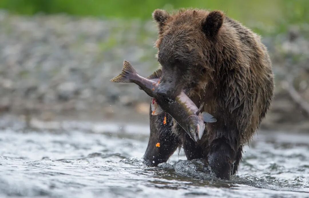 9月到10月的三文鱼回流季,成群的灰熊、黑熊会从山林走向河谷、溪流边捕食三文鱼。这是全球最壮观的“野生观熊秀”,而且几乎是零距离。