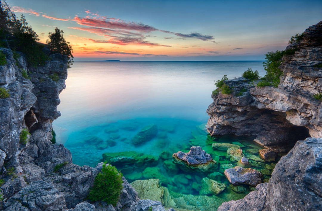 扩展玩法:顺路可去 Tobermory 小镇,体验玻璃底船看沉船遗迹,或登上 Flowerpot Island(花瓶岛)。