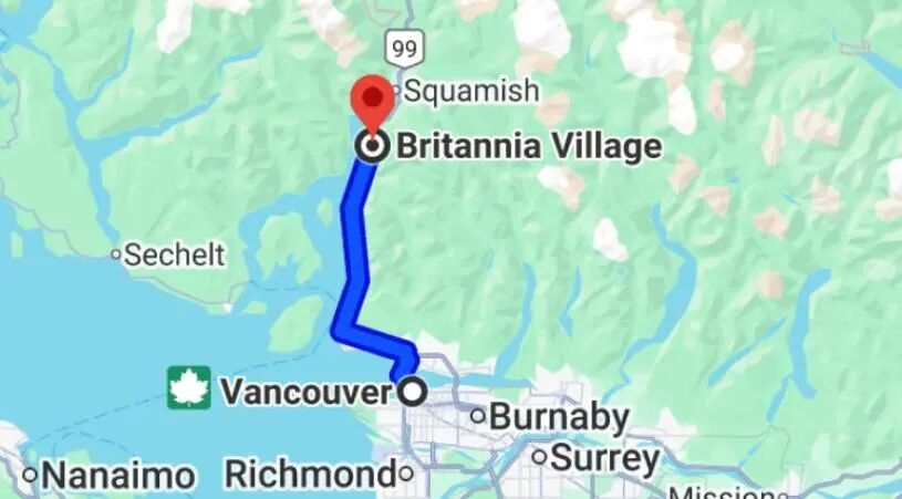 如何前往:从温哥华出发 → 沿99号公路(Sea to Sky Highway)向北 → 约50分钟直达