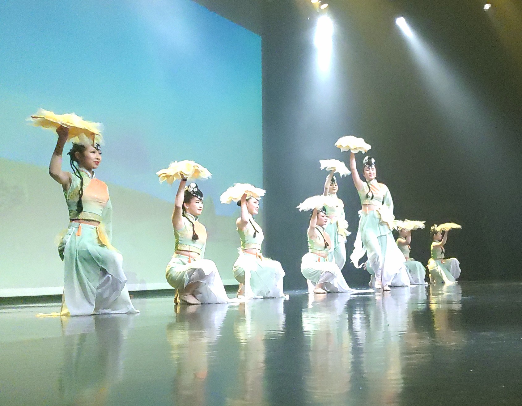 接下来,一段段“墨羽心祈”、“梵音妙舞”、“荷花舞”、“踏青寻芳”、“相遇”、“习武”、“女征”……不同子题的舞蹈,缓缓述说着不同的故事,让观众从舞者曼妙的舞姿中,领略汉族、彝族、朝鲜族、苗族、维吾尔族、藏族、傣族、汉唐、古典、现代风格的韵味,恍惚间,观众的心思都被融入到汉朝、唐朝、清朝和当代的中国。