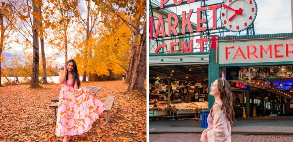 漫步在派克市场(Pike Place Market),桌上摆满苹果、南瓜、玉米、花卉与热腾腾的南瓜派。