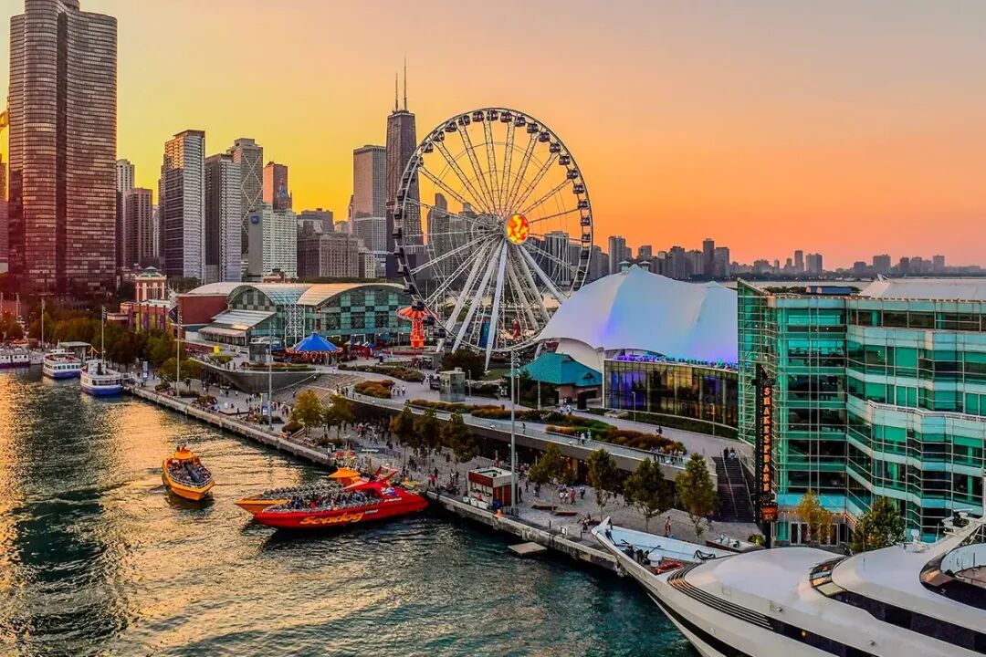 在密歇根湖边的长长栈道,海风温柔,景色宜人。这里有摩天轮、餐厅、露天咖啡厅,非常适合傍晚来散步。
