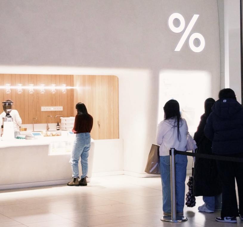 日本人Kenneth Shoji于 2013年在香港创办%Arabica 咖啡店,2014年回日本京都开了旗舰店,此后迅速成为网红品牌。2022年底在多伦多的Yorkdale Shopping Centre开设了加拿大首店(下图右),风头一时无两,此后又在Union Station、Eaton Centre、Sherway Gardens、密西沙加Square One开分店。