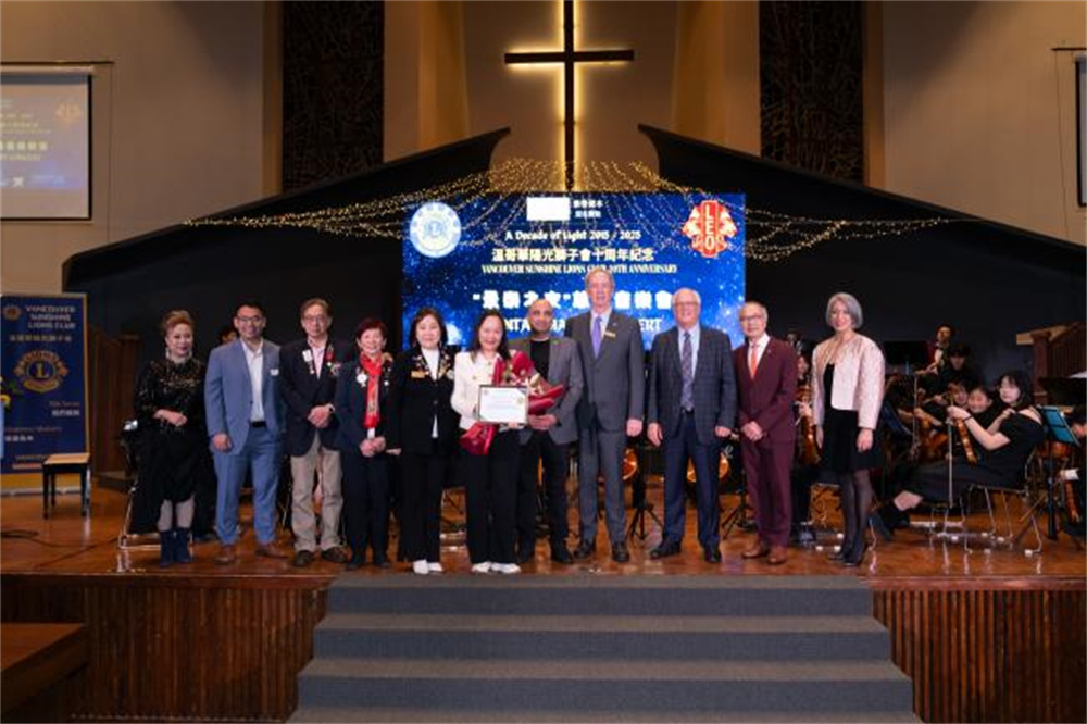 12月7日晚,备受社区瞩目的“温哥华阳光狮子会十周年庆典暨景泰之夜慈善音乐会”圆满落幕。活动在热烈与温情交织的氛围中成功举办,共筹得善款 20,288 元,全数捐赠予列治文社区基金会(Richmond Community Foundation, RCF),帮助有需要的列治文高中毕业生完成梦想顺利迈向大学深造。