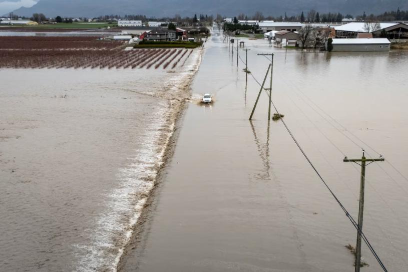 卑诗省阿波斯福(Abbotsford)部分地区周五(12日)持续受到越过美国边境涌入的洪水影响,导致疏散范围扩大、学校停课、1号高速公路一段重要路段封闭,并引发人们对苏马斯草原(Sumas Prairie)地区农民安全的担忧。