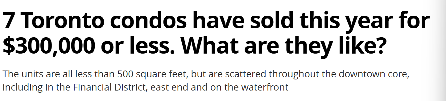 比如,多伦多。Toronto today报道称,随着房价下跌,今年共有7套位于Bloor街以南的市中心studio公寓以30万以内的价格成交。这是自2018年以来从未有过的价格。