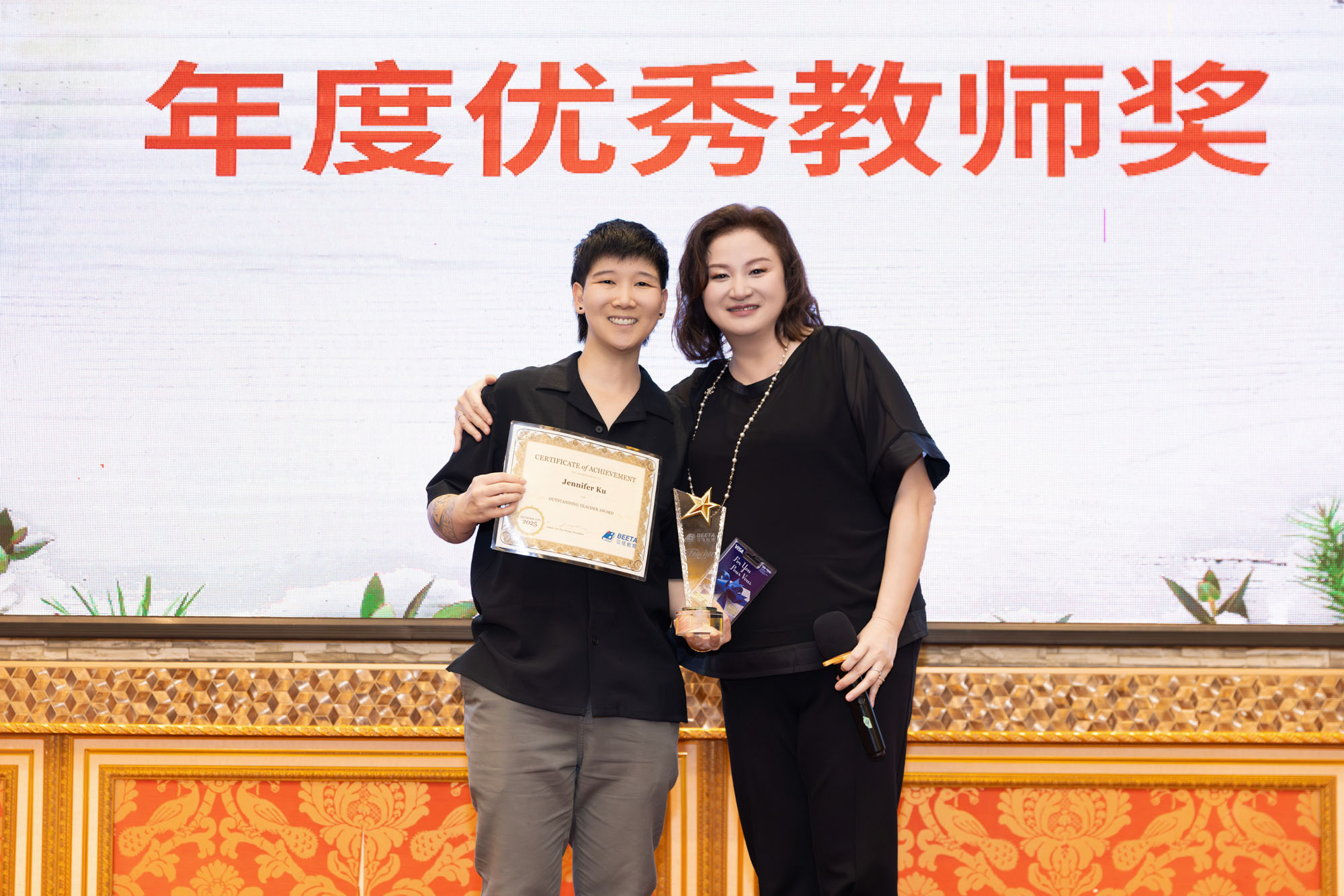 晚宴现场,贝塔对在教学与服务岗位上持续付出的教师与员工进行了表彰,感谢他们在日常工作中的专业投入与默默付出。这一环节不仅是对个人努力的肯定,也体现了贝塔对团队文化与长期发展的重视。