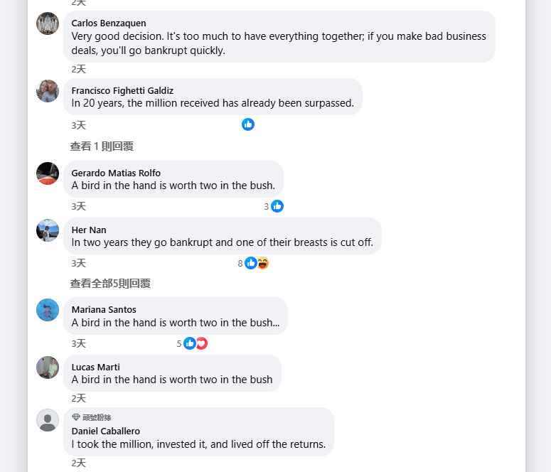 网民激烈争论究竟应该一次过拿走所有奖金,还是选择稳健分期收款。