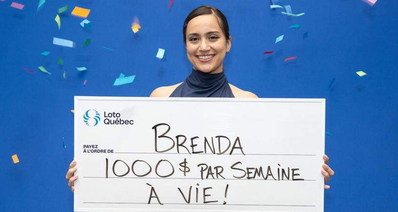 这位20岁少女Brenda Aubin-Vega来自满地可,今年1月初她花费4元购买一张刮刮乐彩票,并赢得了头奖“Gagnant à vie”的100万元奖金。据悉,Brenda所购买的刮刮乐彩票中头奖机率仅150万分之1。