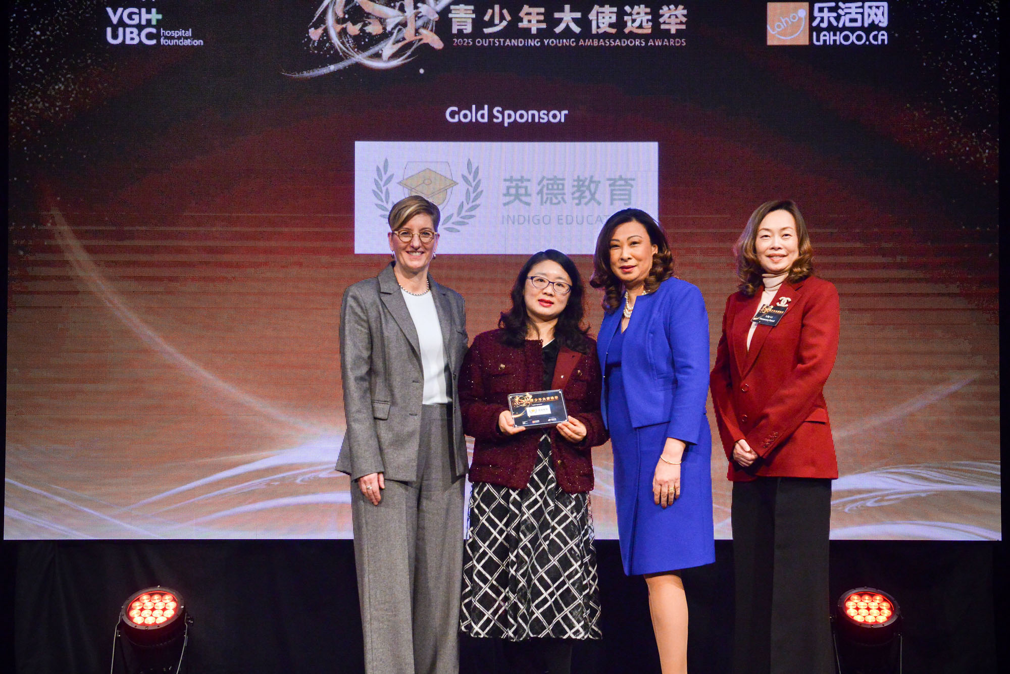 2025年杰出青少年大使艺术与演艺组得奖者:Audrey Sung(冠军),Isaac Savage(亚军),Richard Li(季军),赛事赞助商Indigo Education(英德教育)Fang Fang为获奖者颁奖。英德教育深耕温哥华十余年,专注为孩子在2-16岁之间的家庭提供加拿大私校与公校、加拿大大学、美国高中、美本美硕申请等专业服务。英德教育创始人小熊老师表示,很高兴能够通过支持这项活动陪伴有潜力的青年走向更优秀的自己。作为一名藤校妈妈,也帮助过无数孩子进入名校,她非常理解这些在舞台上闪光的少年背后都需要家庭的托举、良好的教育氛围以及社区支持。