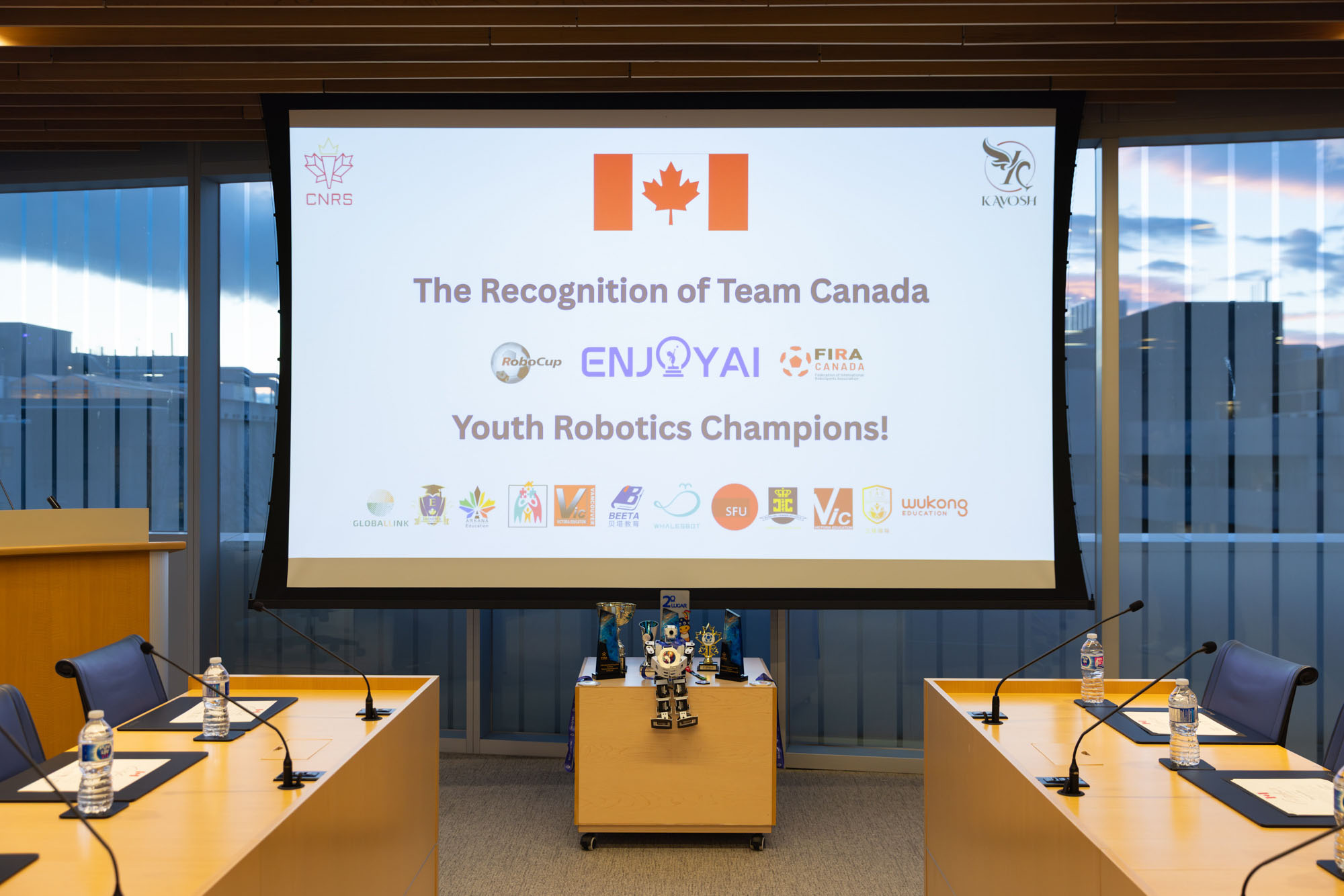 [加拿大乐活网lahoo.ca 讯] 2025年12月15日,由加拿大国家机器人协会(Canadian National Robotic Society,CNRS)主办的表彰仪式在不列颠哥伦比亚大学(UBC)Robert H.Lee Alumni Centre隆重举行。活动表彰Team Canada Youth加拿大青少年机器人代表队成员,团队成员来自Kavosh AI & Robotics Team,在2025 FIRA RoboWorld Cup(韩国)中取得优异成绩,并在国际舞台上为加拿大赢得多项国际荣誉。