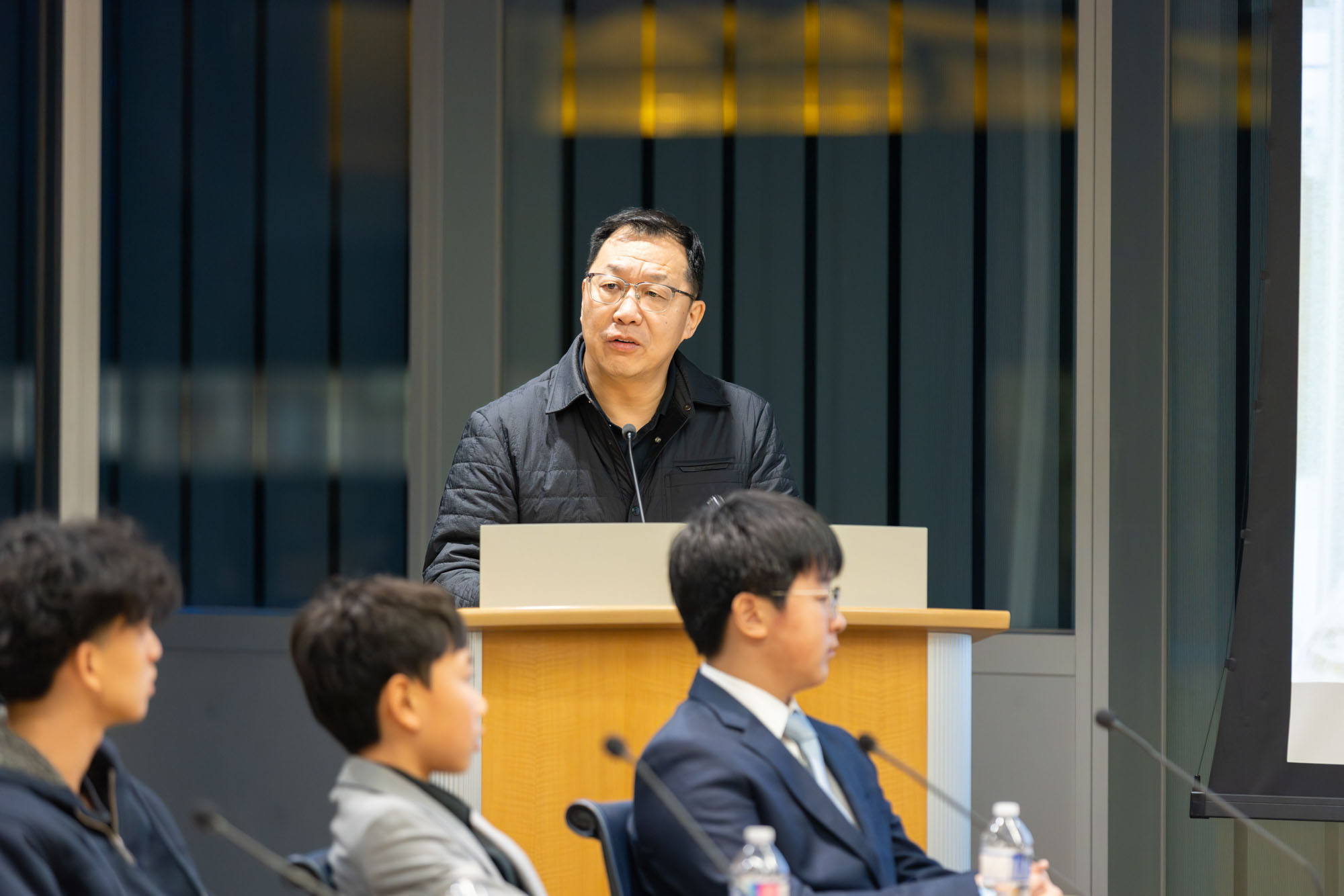 在学术代表致辞环节,西蒙菲莎大学John Shen教授围绕人工智能与机器人产业的全球发展趋势发表致辞,强调从青少年阶段培养科技素养的重要性,并指出国际赛事经验对青年科技人才成长具有重要意义。