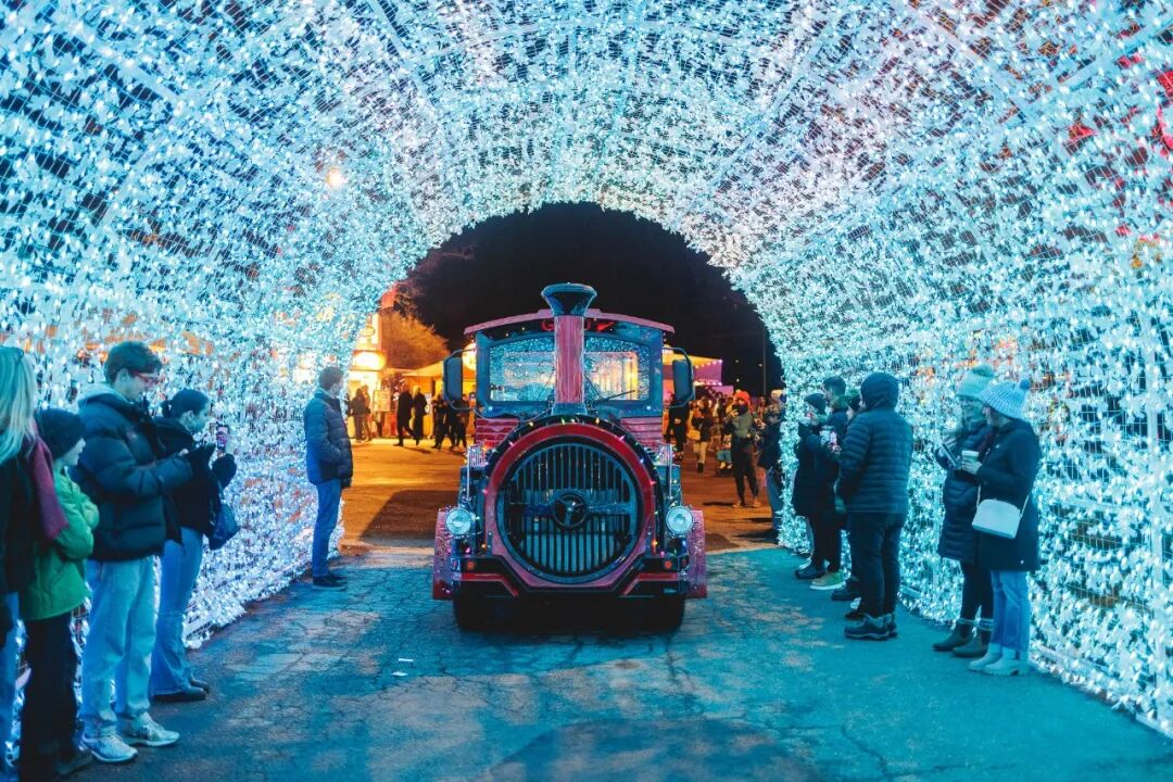 不仅有金光闪闪的圣诞灯光秀,还有溜冰场、各种彩灯布置、可爱的火车巡游,以及每天两场冰上芭蕾秀。