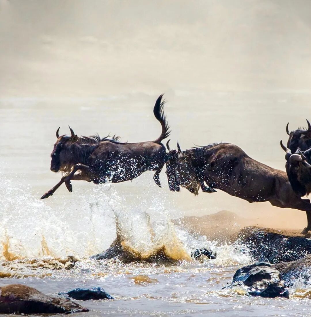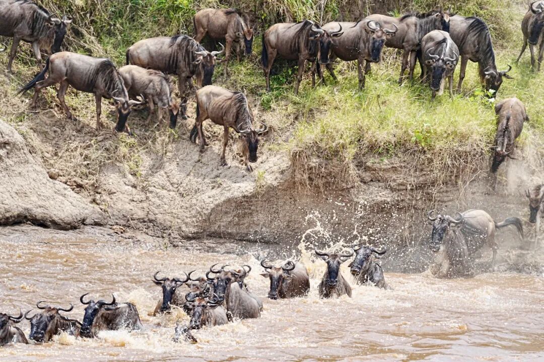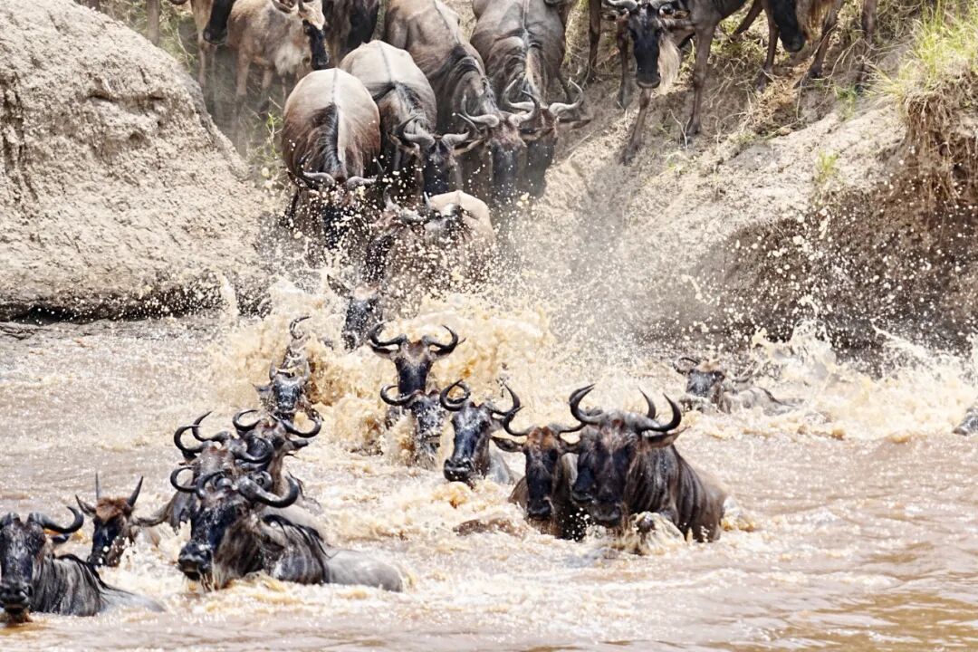 “天国之渡”是自然界最震撼的生存史诗。每年七八月间,百万角马与斑马在肯尼亚与坦桑尼亚交界的马拉河畔,用生命演绎一场关乎存亡的悲壮渡河。眼前是浊浪翻滚的急流,水下是静伏已久的鳄鱼,岸上则是伺机而动的猛兽——每一步都是生死赌注。当先锋纵身跃入,黑色的洪流便如决堤般涌向对岸,蹄声雷鸣,浪花混着尘土飞扬,挣扎、冲锋、跌落、攀爬……自然界的残酷与生命的顽强在这短短时间内赤裸碰撞。它没有剧本,没有预告,唯有野性的咆哮与生命的澎湃;你需要等待,需要耐心,还要加上一点运气,才能碰见“一生必见”的终极野性奇观!