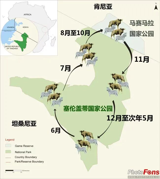相信很多对此稍有了解的朋友们都已经知道,动物大迁徙是全年都在发生着的、一个巨大的、受雨水和牧草驱动的循环。它不是一个单向的直线运动,也没有特殊月份的区分,无论你何时去往非洲大草原,都可以看到动物们迁徙的身影。而在每年的7月中旬-8月,就是一年一度“天国之渡”发生的时刻,这也是大迁徙途中最壮观、最值得一看的景象。