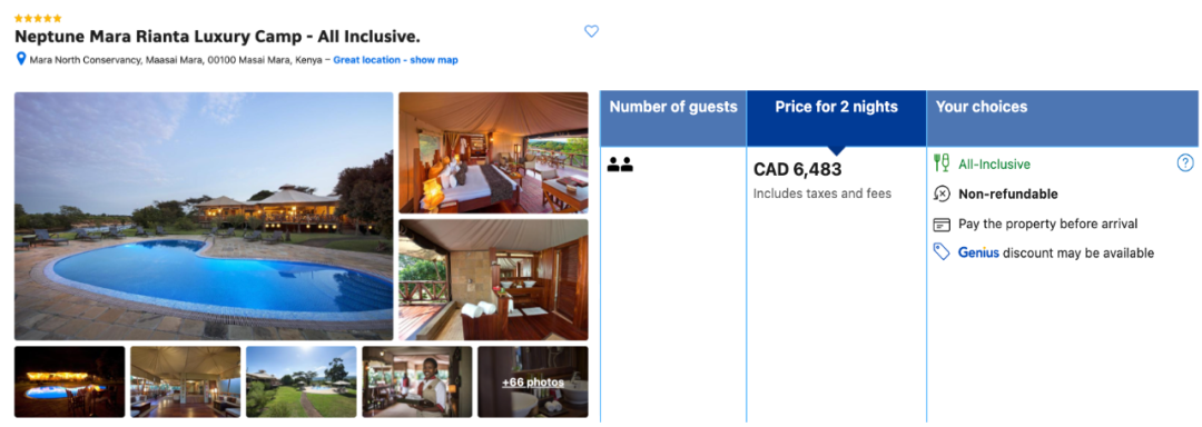 【梵高旅游·肯尼亚坦桑尼亚非洲动物大迁徙之旅】保证您在2026年8月16日及17日(8月团),肯尼亚马赛马拉国家公园内,连住两晚Neptune Mara Rianta Luxury Camp!仅这家酒店,每年7-8月入住,在官网售卖的2晚价格就在6000多加币起,成本极高,可见梵高旅游行程的品质和满满的诚意~
