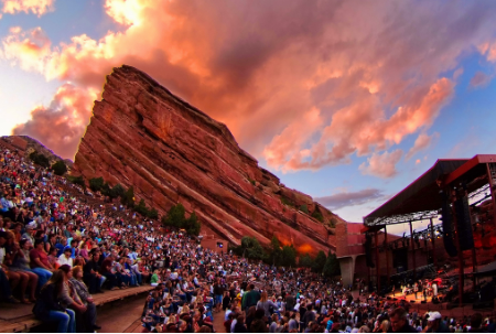 红岩剧场坐落在壮观的红砂岩岩层之间,这些岩层不仅提供了天然的声学效果,还为观众提供了无与伦比的美景。剧场后方可以俯瞰丹佛市区,远处还能看到落基山脉的壮丽景色。