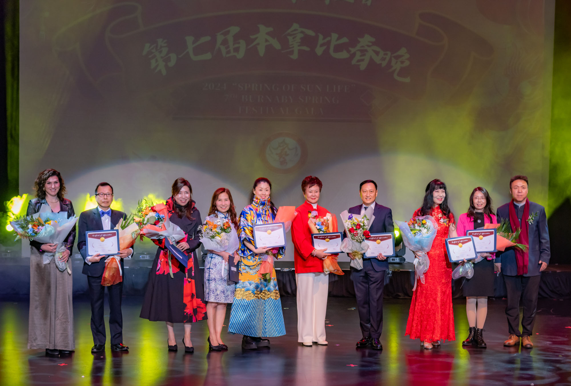 晚会特有的“社区欢歌同唱”环节,邀请本拿比市长Mike Hurley、市议员Joe Keithley、王白进等嘉宾与艺术家同台演绎中英文经典曲目。这是本拿比春晚一道独特的风景线,不仅展现政府与社区的紧密联结,更显示了本拿比多元、包容、共融的城市精神。