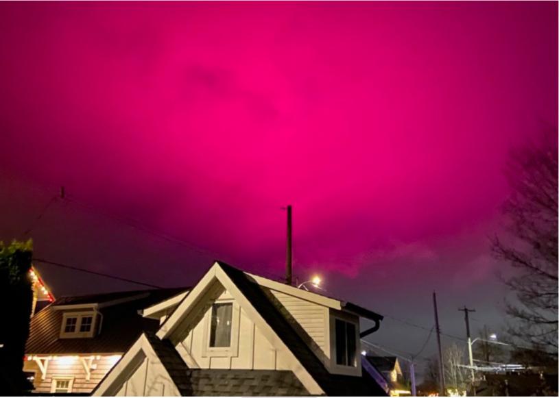 她在脸书上(Facebook)上发布了一张照片,并提出自己的疑问。大多数人都认为,这光源来自她家对面南三角洲边界湾(Boundary Bay)的温室。