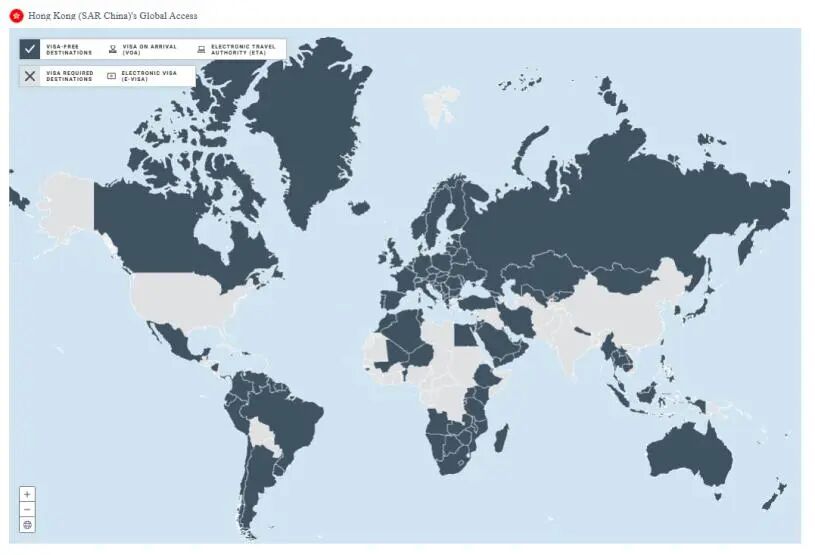 而香港排第18位,可免签171个目的地;台湾第33位,免签139个国家;中国排第59位,仅可免签81个国家和地区,略高于巴布亚新几内亚。