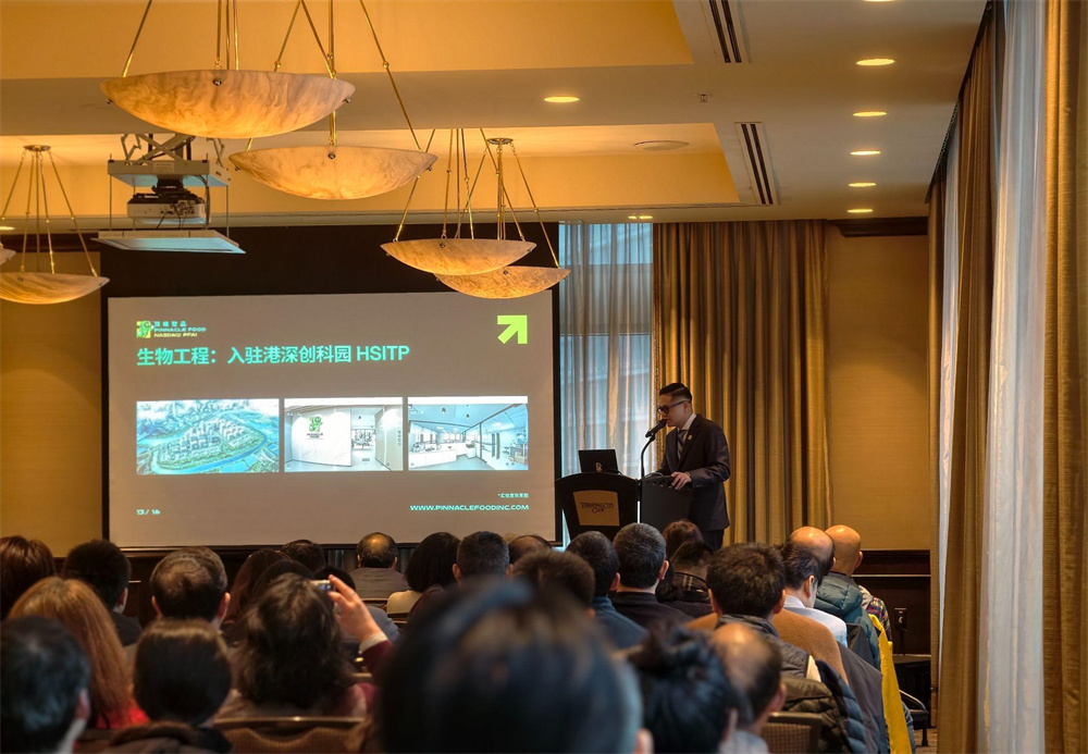 在中场休息后,论坛进入案例分享环节。UBC 校友、顶峰智品(NASDAQ: PFAI)首席执行官尤九龙先生,围绕智慧农业与生物工程双轮驱动的发展实践,分享了作为一家纳斯达克主板上市企业,在高度不确定宏观环境中,坚持长期主义、注重价值密度提升、稳步推进战略布局的思考与经验。今年正式启动人源乳铁蛋白研发并入驻港深创科园,在合规前提下主动选择、顺应周期,构建面向未来的全球食品科技平台。