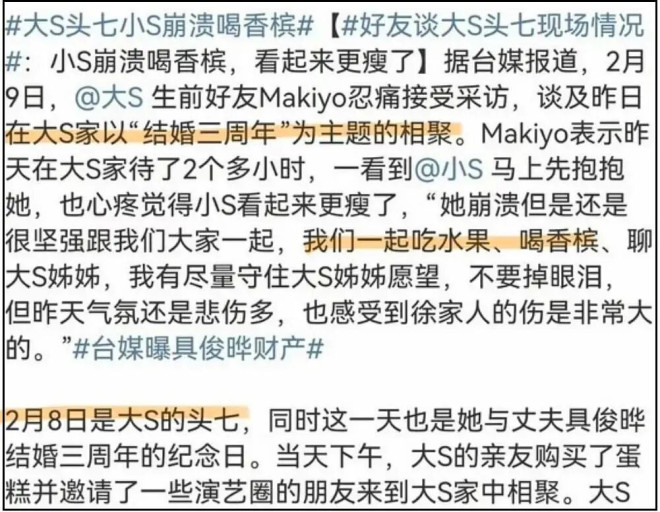 ——真正有效的回应,不是应该晒出把大S遗产交接给大S子女的证据吗?哪怕几张照片、几条聊天记录,小S几句话都含糊过去了,难道要等大S孩子长大之后,才会有真相吗?
