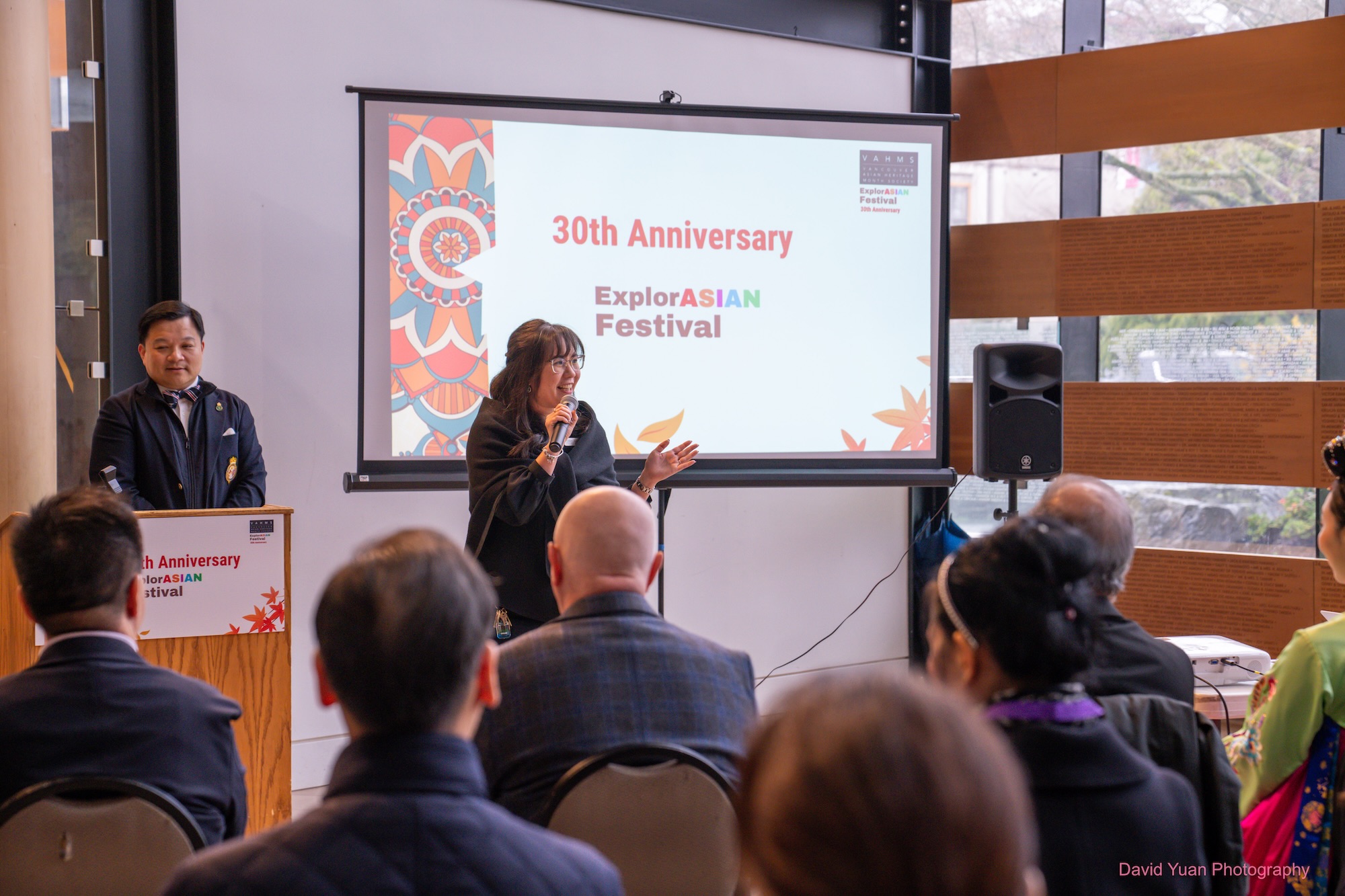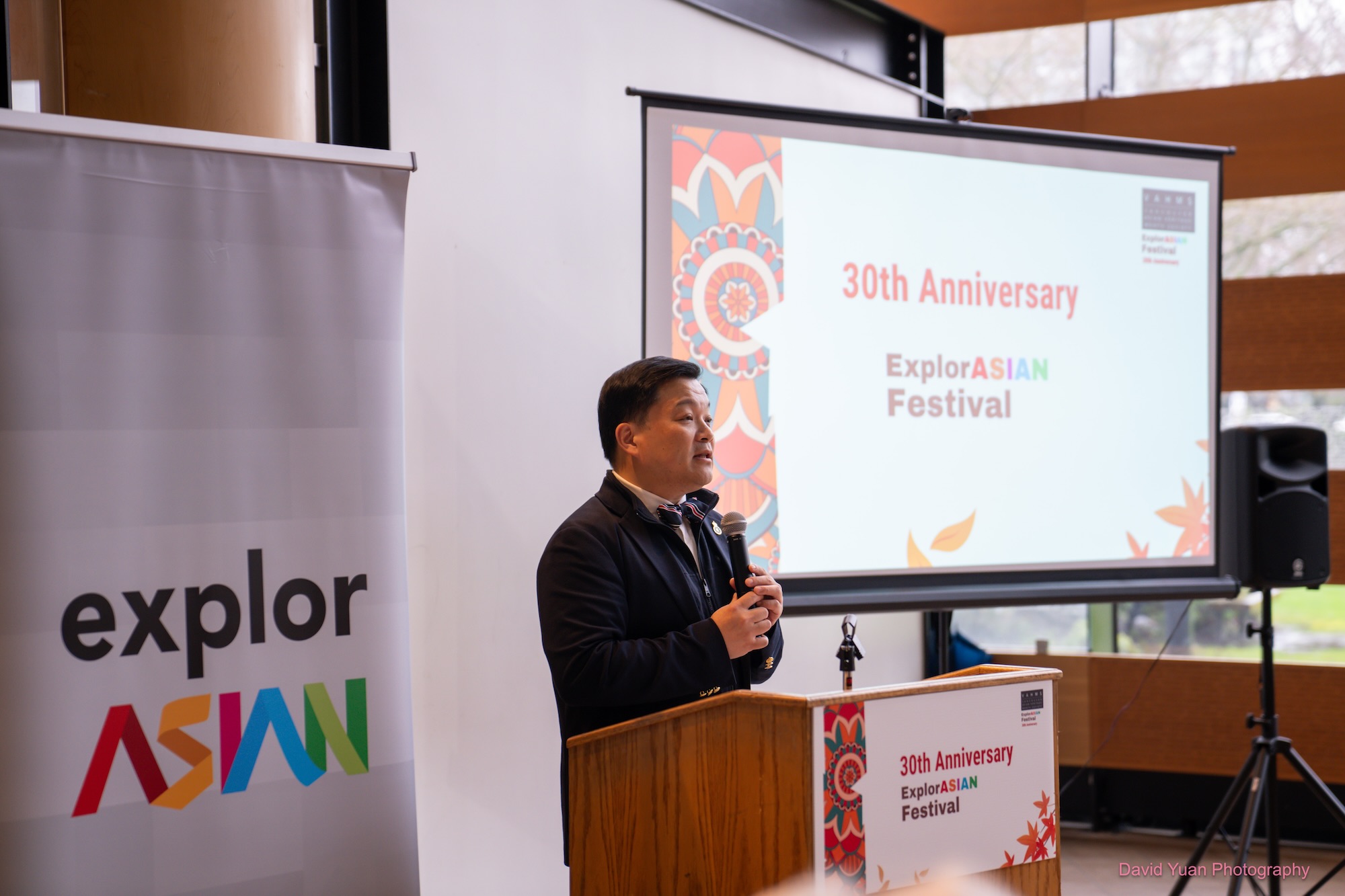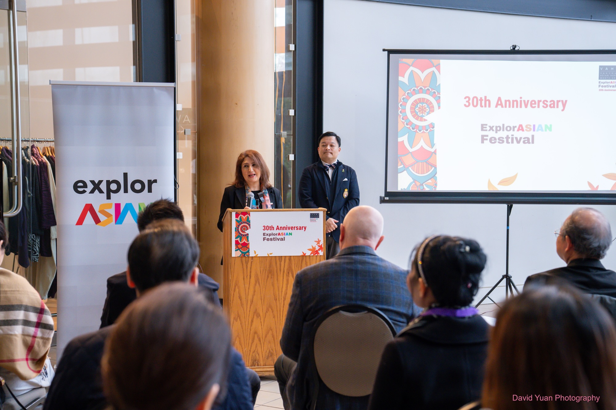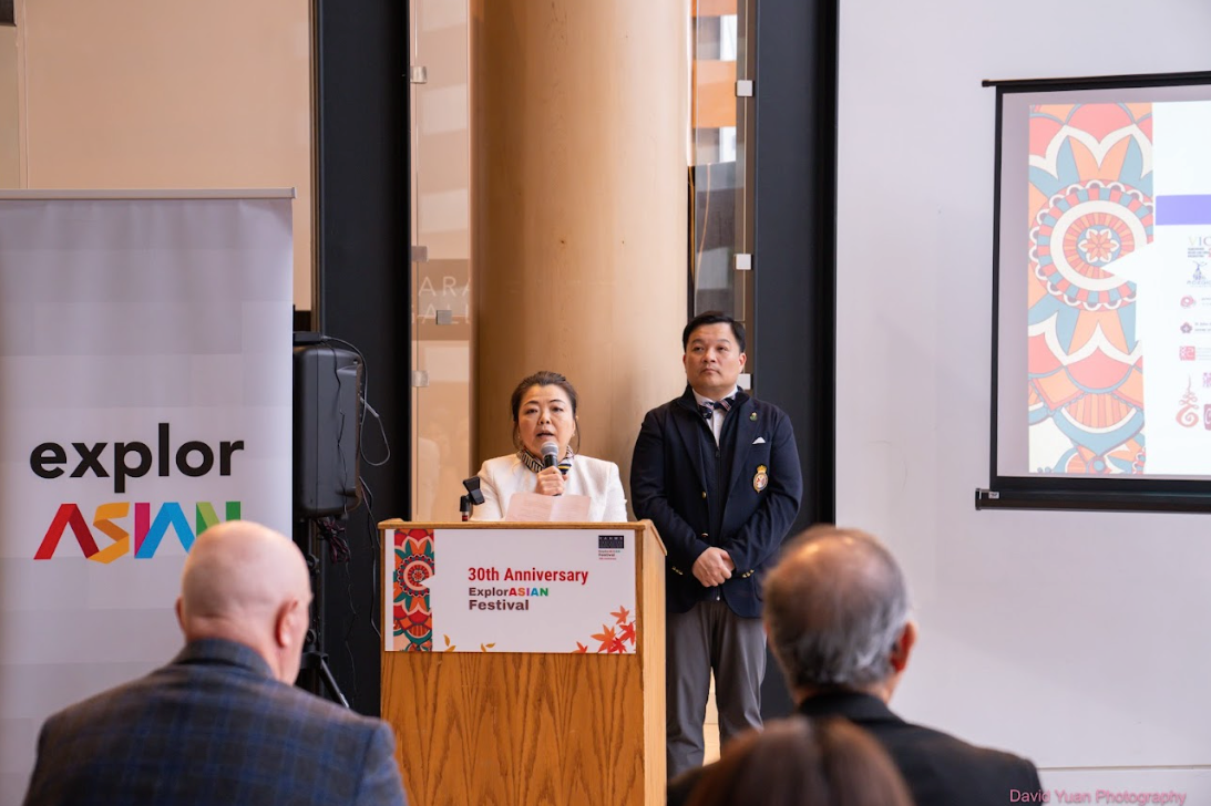VAHMS 会长陈 June 在开幕致辞中表达了诚挚感谢,向所有参与亚洲文化传承月活动的社区伙伴致以谢意。她回顾了 ExplorASIAN 艺术节三十年来的发展历程,并鼓励各社区领袖积极分享想法,探讨未来如何深化合作、共同参与。