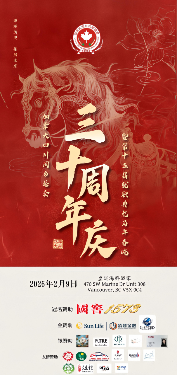 三十载薪火相传,新起点砥砺前行。站在新的历史起点,这座由乡情与文化筑成的“川桥”,在张悦会长及新一届理事会的引领下,在温哥华中华会馆、加拿大华人社团联席会及各界侨领、社区代表的鼎力支持下,必将继续见证并推动中加两国人民之间的友谊,如川流不息,绵延长远。它不仅承载着过去的温暖记忆,更开拓着未来的无限可能,在太平洋两岸传递着那份从容、乐观与包容的巴蜀情怀。
