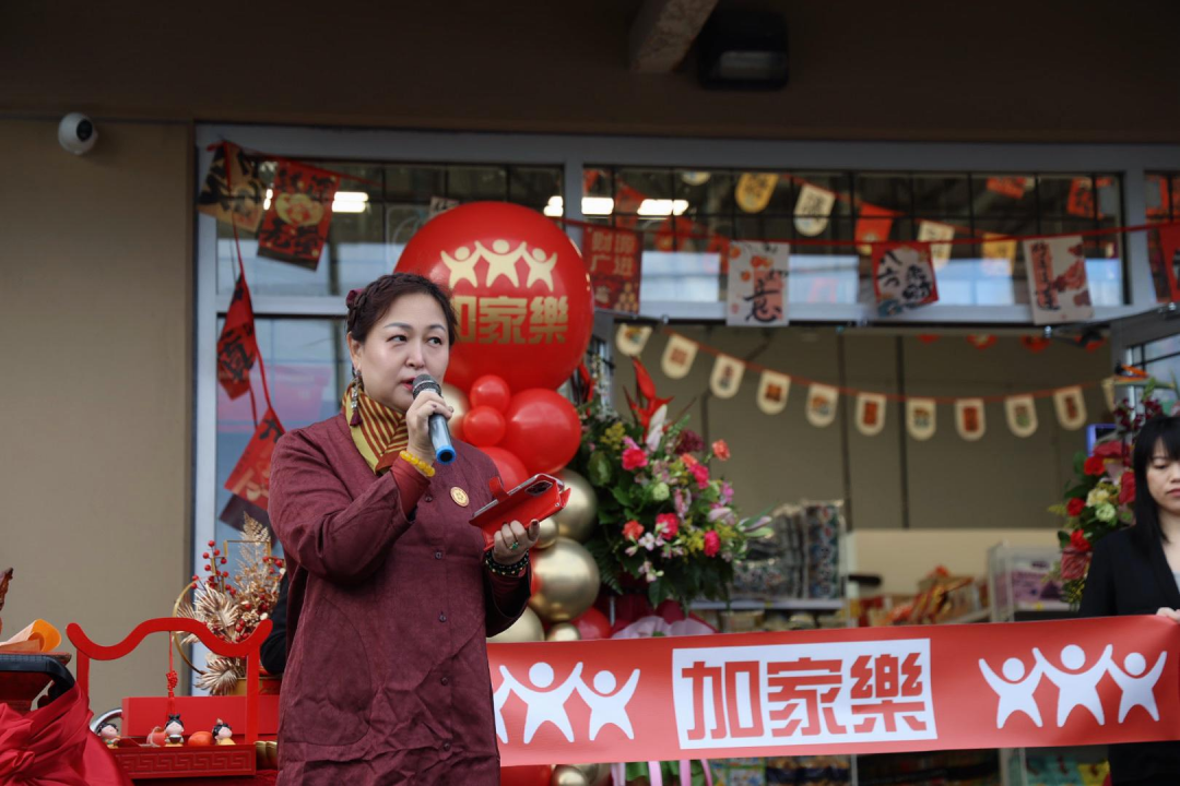 中华会馆理事长钱华女士受邀出席并发表热情洋溢的致辞。她首先对加家樂南素里分店的开业表示热烈祝贺。钱华女士在致辞中表示:“民以食为天,对于海外的华人朋友来说,一口地道的家乡味是抚慰乡愁的最好方式。过去,南素里和白石的朋友们想置办一顿地道的火锅、烧烤食材,往往要驱车远赴列治文。加家乐的开业,真正实现了‘近水楼台先得月’,把最齐全、最地道的家乡食材送到了我们的家门口。”她赞扬加家乐扎根社区、弘扬中华饮食文化的担当,并祝愿生意兴隆,红红火火。