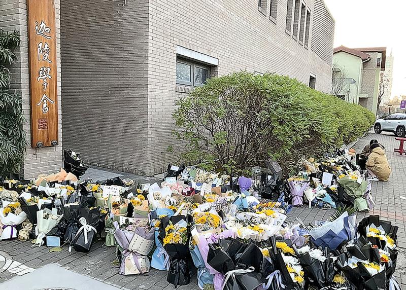 叶嘉莹仙逝后民众及学生于迦陵学舍献花:毋忘对中华文化的贡献(图:赵言慧提供)