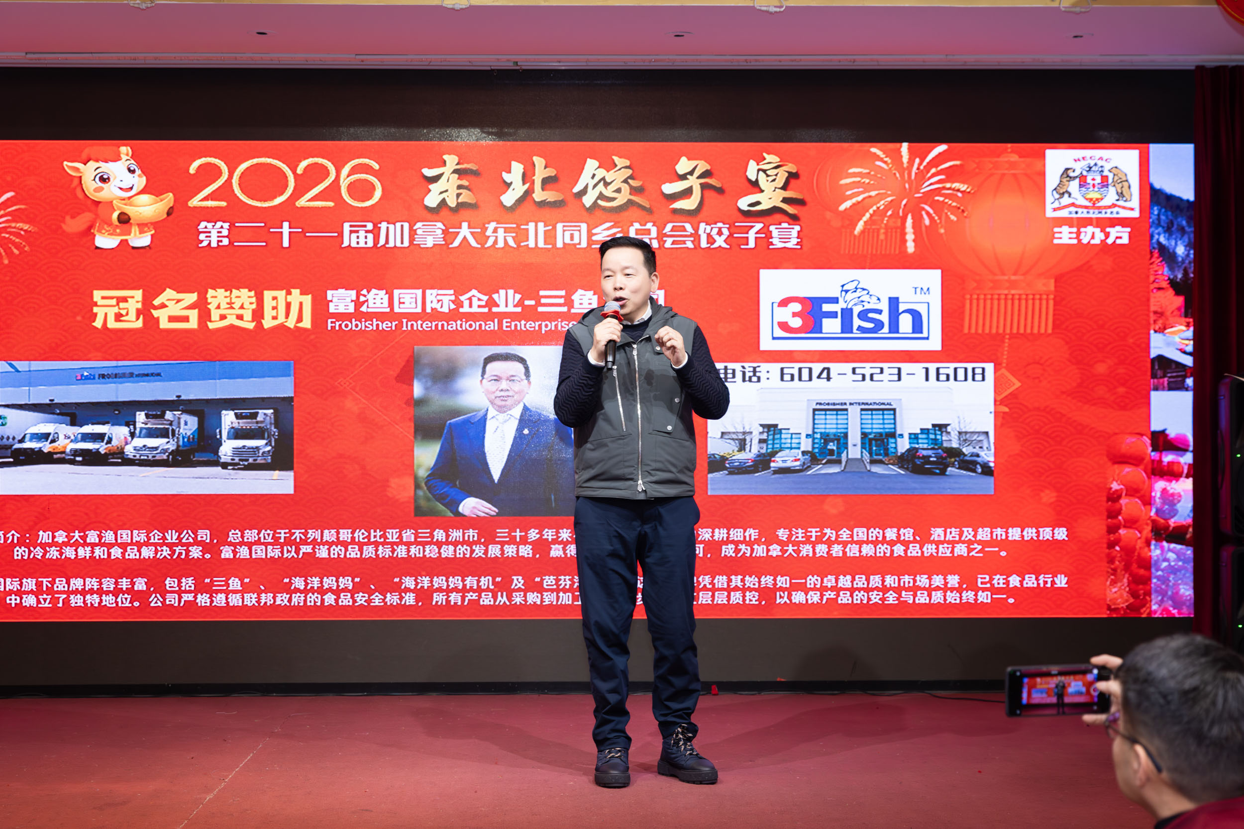 [加拿大乐活网lahoo.ca 讯] 2026年3月6日(农历正月十八,星期五),由加拿大东北同乡总会主办、加拿大东北总商会协办的“第二十一届加拿大东北同乡总会饺子宴”,在列治文幸运海鲜酒楼隆重举行。作为大温华人社区延续多年的品牌活动,东北饺子宴不仅是一场洋溢着年味与乡情的美食盛会,更成为海外东北人相聚联谊、凝聚乡情的重要平台。 当晚现场宾朋满座、气氛热烈,来自大温地区的400余位东北同乡及各界嘉宾齐聚一堂。大家在热气腾腾的饺子香与欢声笑语中相互问候、畅叙情谊,共同分享来自家乡的温暖记忆。虽然身在海外,但那片广阔的黑土地始终牵动着每个人的心——那里有童年的故事、亲人的笑容,也有挥之不去的乡音与年味。