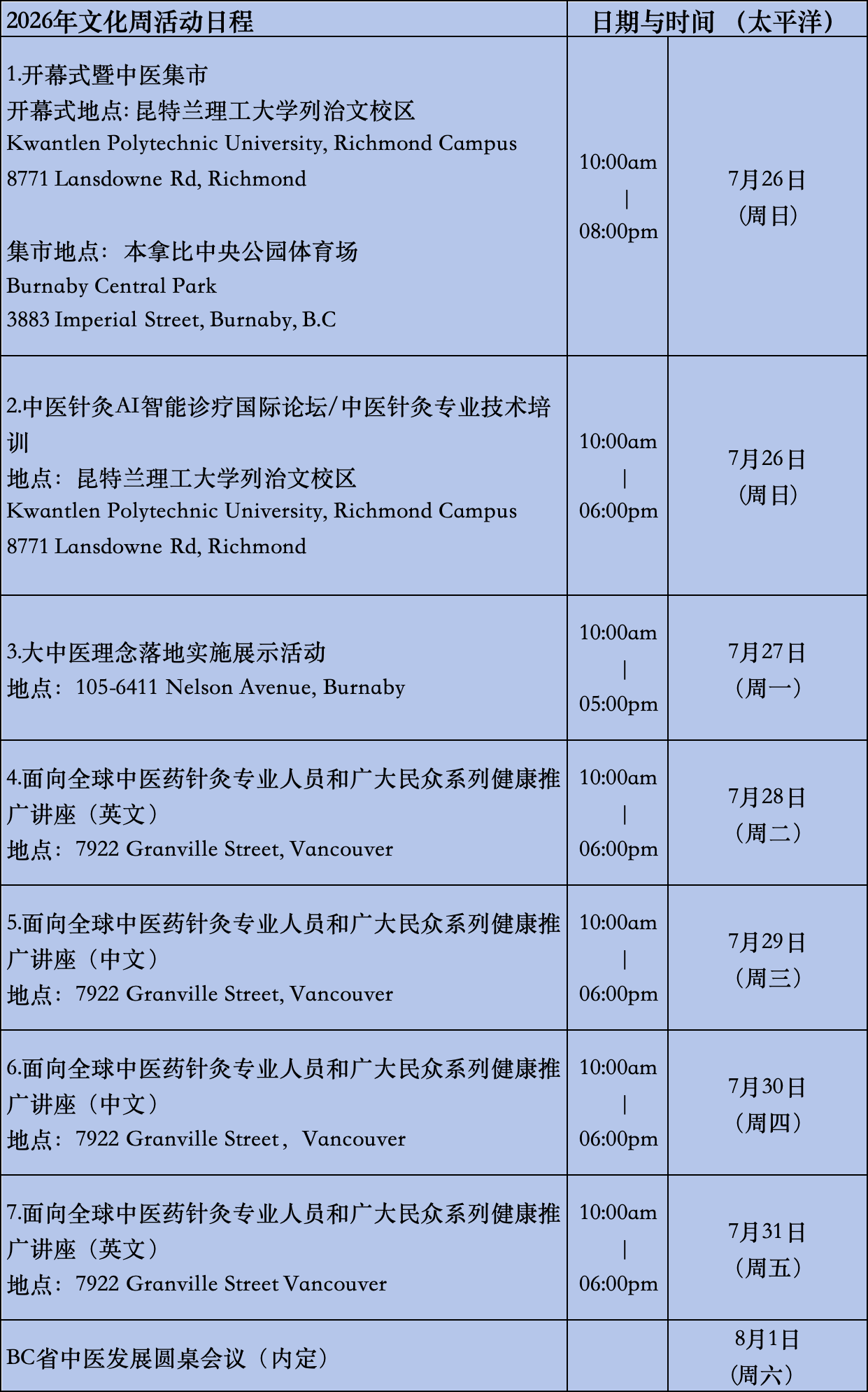 二、2026第六届世界中医药针灸文化周暨第四届BC省中医针灸周